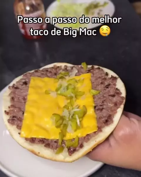 😮💨 Deu vontade de comer um lanche??? Olha essa deliciosa receita de taco de big mac. 🤤 👩🍳 Essa é a receita: - Carne moída (20% de gordura) - Tortilha - Alface - Cebola - Pepinos em conserva - Fatias de queijo 🍔 TEMPERO PARA HAMBÚRGUER • Sal • Pimenta • Páprica • Cebola • Alho - Espalhe a carne de maneira uniforme e fina possível na tortilha usando um garfo. #viraliza #maisviews #lanche #comidafit #saladasaudavel