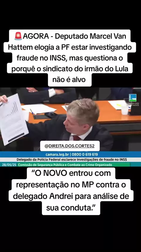 🚨AGORA - Deputado Marcel Van Hattem elogia a PF estar investigando fraude no INSS, mas questiona o porquê o sindicato do irmão do Lula não é alvo “O NOVO entrou com representação no MP contra o delegado Andrei para análise de sua conduta.”