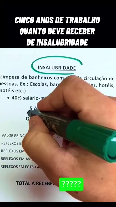 CINCO ANOS DE TRABALHO QUANTO DEVE RECEBER DE INSALUBRIDADE #advogado #trabalhador #Lei #direitos #justiça