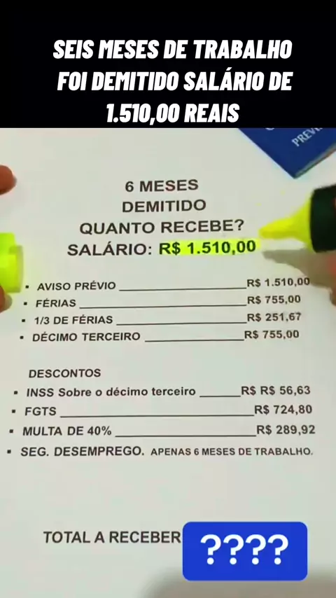 SEIS MESES DE TRABALHO FOI DEMITIDO SALÁRIO DE 1.510,00 REAIS #advogado #trabalhador #Lei #direitos #justiça
