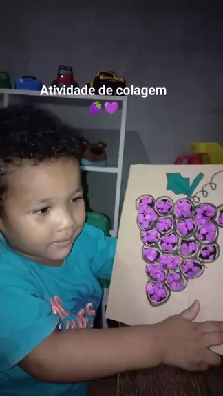 Atividade de colagem 🍇💜 O João está desenvolvendo uma atividade lúdica e educativa que estimula a criatividade, a coordenação motora fina, a expressão artística e a percepção visual das crianças. Além disso, pode contribuir para o desenvolvimento da concentração, da atenção e da organização espacial. Recursos utilizados: papelão, papel crepom, caneta preta, fita durex e estilete. #maedemeninos💙💙 #educaçãoinfantil #atividadespedagogicas