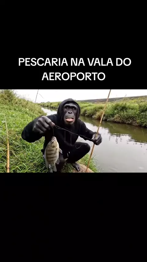 PESCARIA NA VALETA DO AEROPORTO. #ubatuba #inteligenciaartificial #cunhambebe #meme #chimpanzé