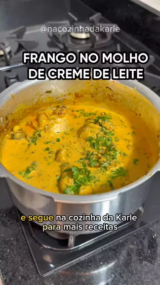 FRANGO NO MOLHO DE CREME DE LEITE INGREDIENTES ⤵️ • 500 g de frango (corte de sua preferência) • 1 tomate • 1 cebola • ½ pimentão verde • 2 dentes de alho • 2 colheres de molho de tomate • 2 caixinhas de creme de leite • 50 ml de água • Óleo a gosto • Sal a gosto • Açafrão a gosto • Lemon pepper a gosto • Corante a gosto • Cheiro-verde a gosto ➡️ MODO DE PREPARO NO VÍDEO #frangoaomolho #frango #frangocomcremedeleite #receitasfáceis