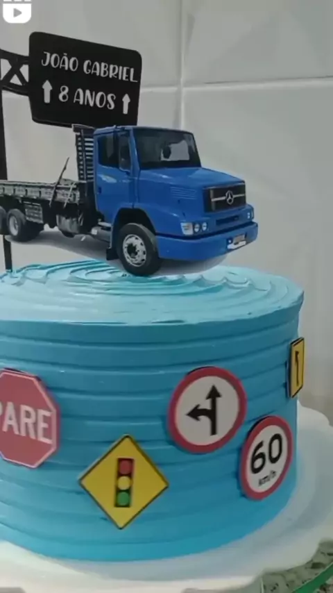 Bolo Tema Caminhão 💙🚛 #bolospersonalizados #bolocaminhao #bolocaminhoneiro #bolodecorado #fly
