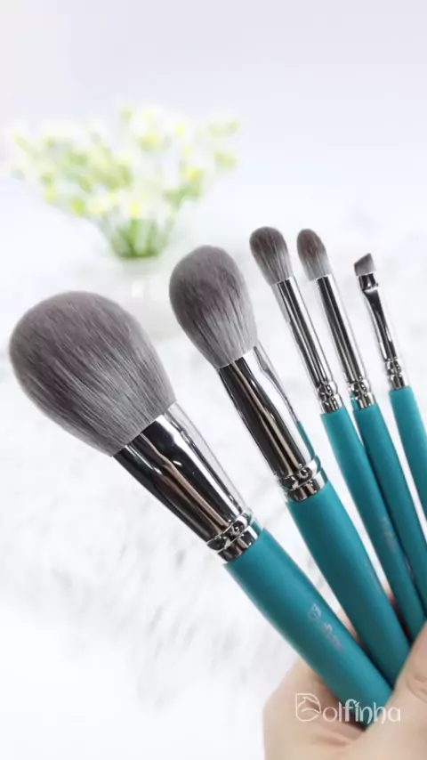 Kit essencial de 5 pincéis 💙 -cerdas sintéticas super macias; -cabo de madeira pintado em azul; -cada pincel com a própria função. #doldinha #dolfinhalovers🔥 #pinceisdemaquiagem #kitpincéis #dicasdebeleza