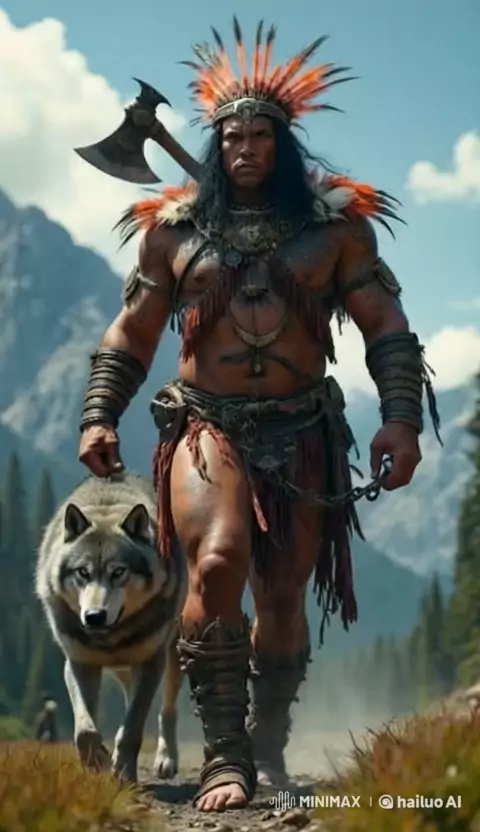 Guerreiro índio incas passeando com seu nobre lobo #ai #fyp #viral #fusao #viraliza
