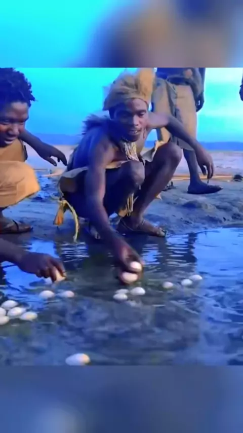 Povos tribais que põem ovos na lagoa # hadzabetribe # eating # # young # guys # love # food # bushlife # natural # pond # water # happy # playing # forest # jungle # together