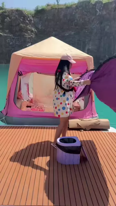 Experiência de acampamento imersiva na água. # cozyspace # girlcamping # outdoors # camping # pinkcar # outdoorlife