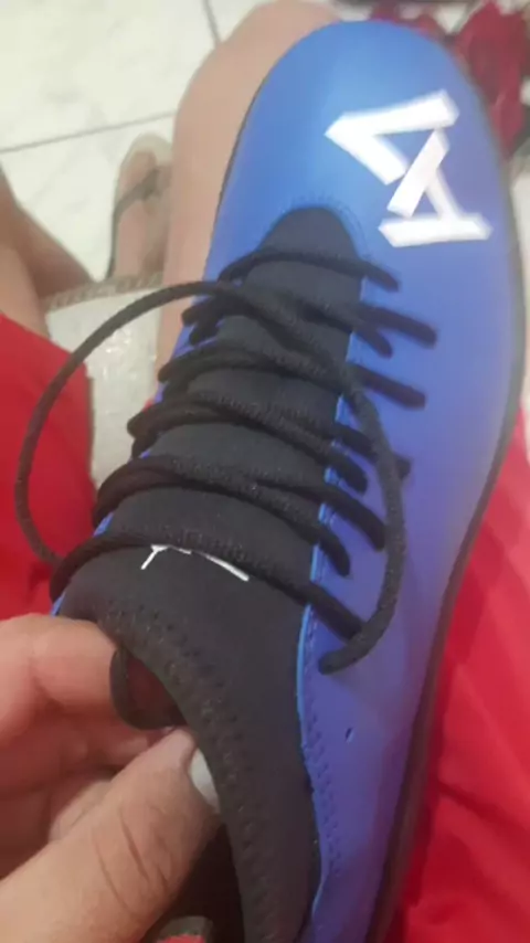 tentando colocar o cadarço na chuteira A7