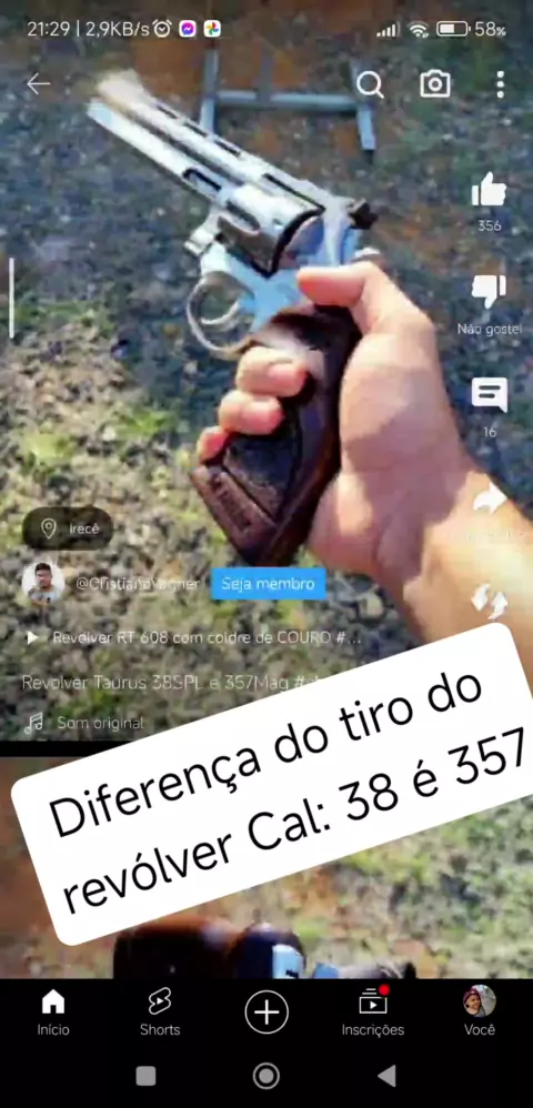 diferença do tiro do 🔫 calibre 38 e 357 #TOP