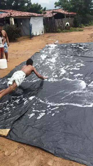 Escorregando na lona com sabão