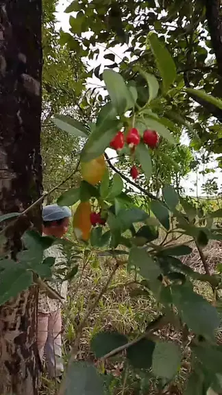 andando na mata com minha mãe , e achando frutas do cerrado 😋