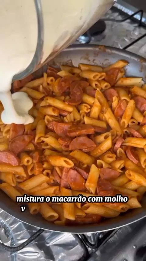 Olha essa macarronada com calabresa 😋 Créditos: @matheus.camargo95 Ingredientes: 500g de macarrão 1 cebola grande 2 calabresas 150g de bacon 150g de mussarela 2 sachês de molho 2 batatas cozida 1 creme de leite 1 medida de leite (da caixa de creme de leite) 100g de mussarela Sal e pimenta do reino a gosto Cebolinha . #comida #receita #receitas #receitasimples #receitasfaceis