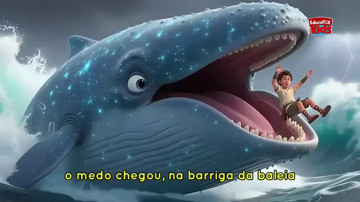 Jonas e a Baleia-Hotel! 🐳🚪 Já imaginou essa aventura? 😱 Assista o vídeo completo no YouTube para saber o que acontece! Link na bio! #JonasEABaleia #DesenhoAnimado #AventuraCristã #shortsviral #EducaFlixKids
