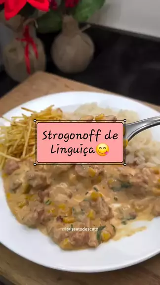 Strogonoff de linguiça😋 Ingredientes: Meio kilo de linguiça Toscana Alho e cebola a gosto 1 lata de milho 2 creme de leite Meia xícara de leite . . ● 📽@larissatodescato