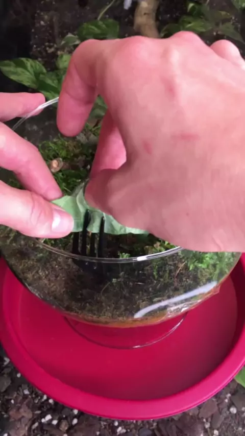 Melhorando o terrário da lagarta e alimentando ela 🐛 #lagarta #terrario #experimento #nikplantas #topz