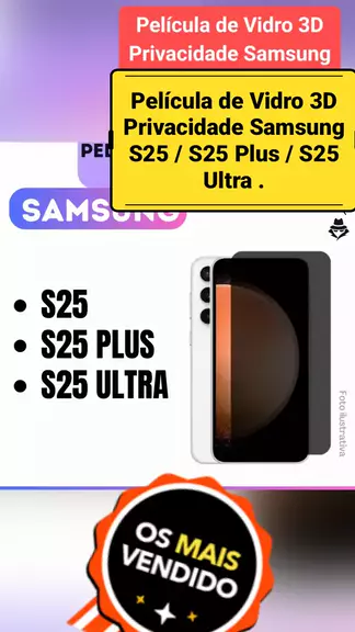 Película de Vidro 3D Privacidade Samsung S25 / S25 Plus / S25 Ultra . #ecomerce #celulares #CrescerNaFamília