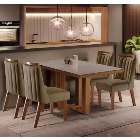 Conjunto Sala de Jantar Mesa Tampo MDF e Vidro e 4 Cadeiras Lottus #divulgadormagalu #linknabio