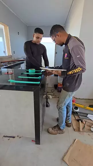 Instalação da pia e bancada da cozinha #construção #pedreiro #obra #reforma #marmore