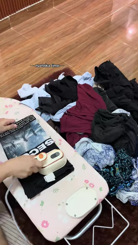 #ad Dinikmatin aja walaupun ini pkerjaan rumah tangga yg paling mnyebalkan menurut aku hihi strika lebih enteng karena pakai strika uap favoritt🫶🏻 #strikauap #setrikauap #nyetrika #setrika #setrikalistrik