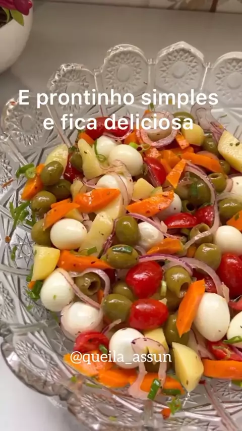 Salada deliciosa, aprenda a receita ! 🚨 ATENÇÃO !! Cardápio grátis para você, clica no link da bio APROVEITA é grátis❗ ✨Já salva para não esquecer e fazer depois ! ✨SALADA✨ 👩🏽🍳 INGREDIENTES: 1 cartela de ovo de codorna 150 gramas de azeitona sem caroço 150 gramas de tomatinhos 3 batatas pequenas 2 cenoura média 1 cebola roxa pequena 1 limão cebolinha sal pimenta calabresa azeite e orégano a gosto. A batata é a cenoura cozinhei no vapor. #Comida #Saúde #emagrecimento #dieta