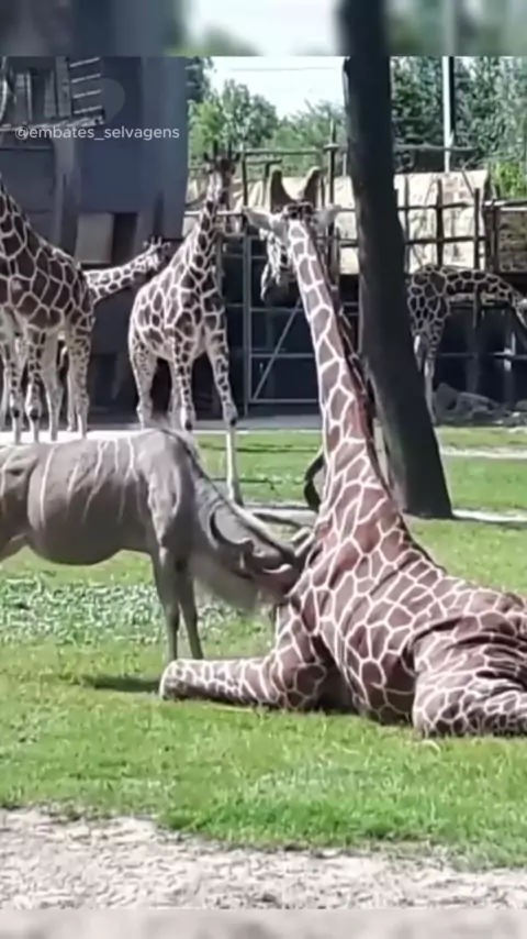 Tamanho não é documento! Incríveis imagens de um Gnu e uma Zebra enfrentando Girafa, qual é quase 5 vezes o seu tamanho.🦒 . . . #zebra #girafa #gnu #savana #nature
