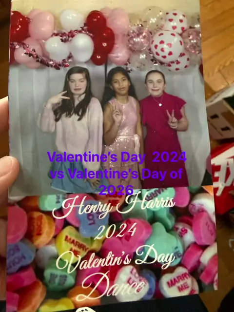One more day until Valentine’s Day but I have pics from my Valentine’s Day dance from two years. 2024 vs 2026