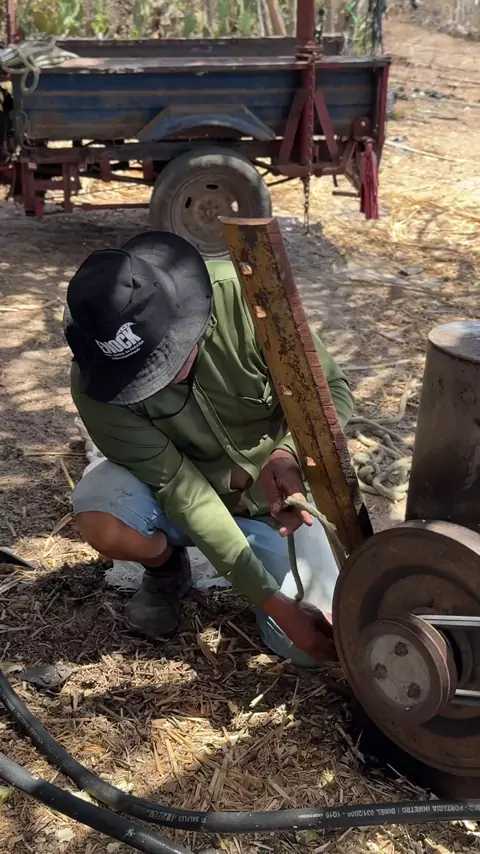 Vou colocar a forrageira em cima da moto com a ajuda da girafa