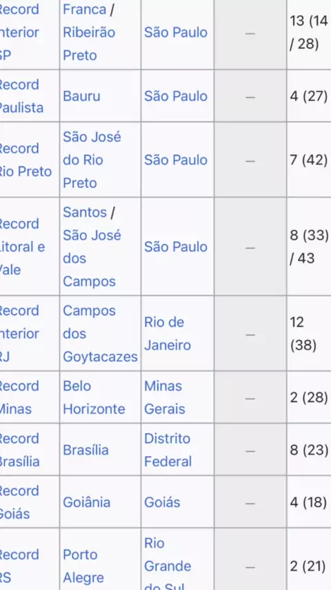 Veja quantas emissoras a TV Record tem espalhada pelo Brasil e quantas afiliadas usam o sinal da emissora de Edir Macedo. A Record é de fato uma das maiores em sua cobertur nacional. #record #tv #emissora #edirmacedo