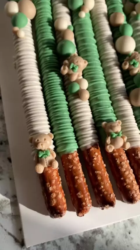 Teddy bear baby shower treats 🧸✨💚#chocolate#chocolatecovered#chocolatecoveredtreats#dippedstrawberries#dippedtreats#chocolatecoveredoreos#chocolatecoveredstrawberries#chocolatecoveredpretzels#cakepops#cakesicles#marshmallow#minicheesecake#teddybeartheme#chocolateoreos#