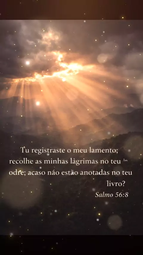 LEIA ISSO: Nenhuma lágrima sua caiu no chão sem que Ele visse. 🙏 chorar #biblia #consolo #shorts Às vezes, a gente acha que está sofrendo sozinho e que ninguém percebe o cansaço no nosso olhar. 🌿✨ O Salmo 56:8 é o lembrete de que Deus não apenas ouve o seu lamento, Ele registra cada detalhe da sua dor. Suas lágrimas não são desprezadas; elas estão sendo guardadas por Quem te ama infinitamente. 1️⃣ Digite "AMÉM" se você precisava desse abraço