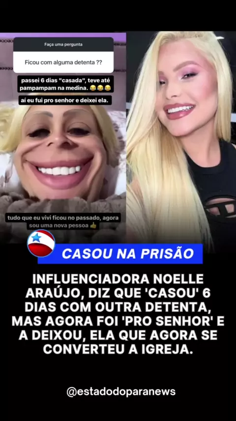 A influenciadora Noelle Araújo que passou 25 dias presa por descumprir medidas judiciais da prisão anterior em decorrência da operação "Truque de Mestre", respondeu a uma seguidora que perguntou se ela havia 'ficado' com alguma detenta. Ela respondeu que casou por 6 dias com direito a "pamparapam" em referência à marcha nupcial. Porém agora é "do Senhor" e não tem mais nada com a detenta. #belem #belemdopara #pará #estadodopará #noellearaujo
