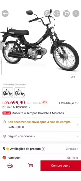 Prepare-se para a liberdade sobre duas rodas! 馃殌 Chegou a Mobilete 4 Tempos Bikelete 4 Marchas que voc锚 esperava! Praticidade, economia e estilo em um s贸 lugar. E o melhor: de R$ 7.666,56 por APENAS R$ 6.699,90! 馃槺 Parcelamento em at茅 12x de R$ 558,33 e FRETE GR脕TIS para todo o Brasil! N茫o perca essa chance de ter a sua! 馃敟 #Mobilete #Bikelete #4Tempos #LiberdadeSobreRodas #Moto