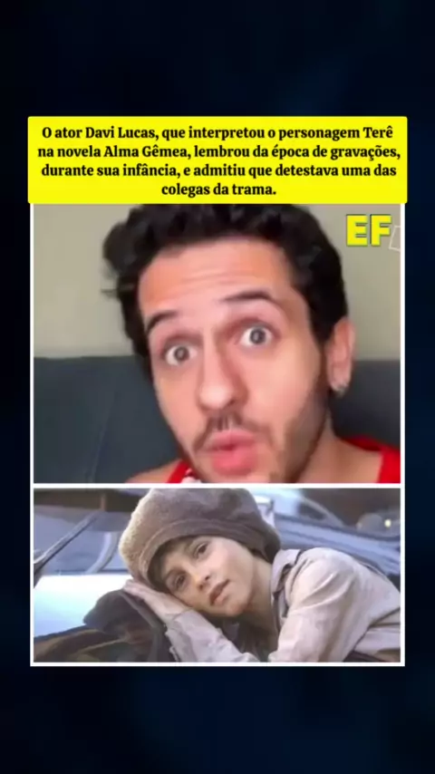 O #ator Davi Lucas, que interpretou o personagem Terê na #novela Alma Gêmea, lembrou da época de gravações, durante sua #infância, e admitiu que detestava uma das colegas da trama. #almagemea
