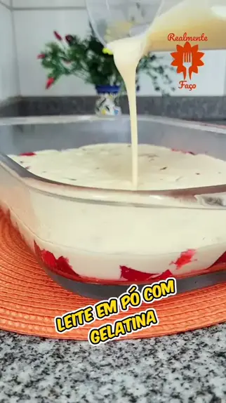 Leite em pó com Gelatina de Morango! Você precisa provar essa receita 😋 #gelatina #leiteempó #sobremesa #confeitaria #realmentefaco