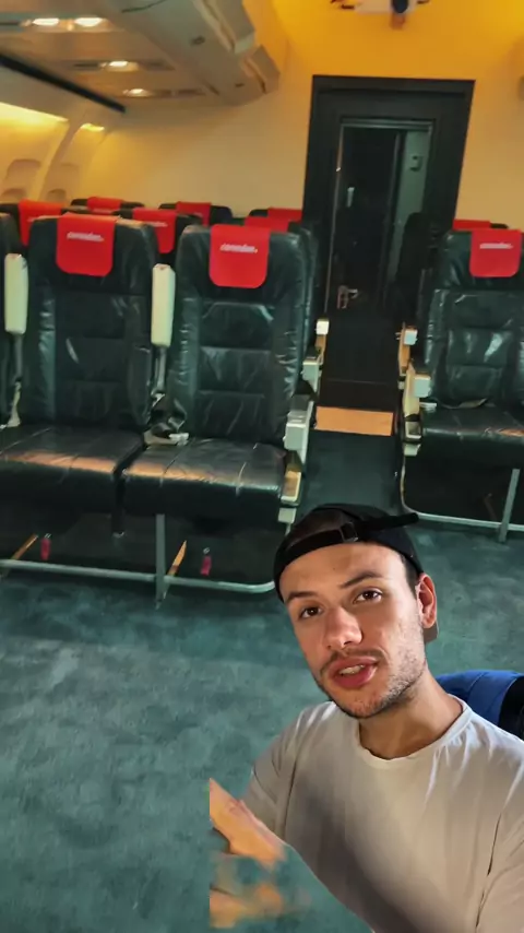Um avião dentro do quarto do hotel