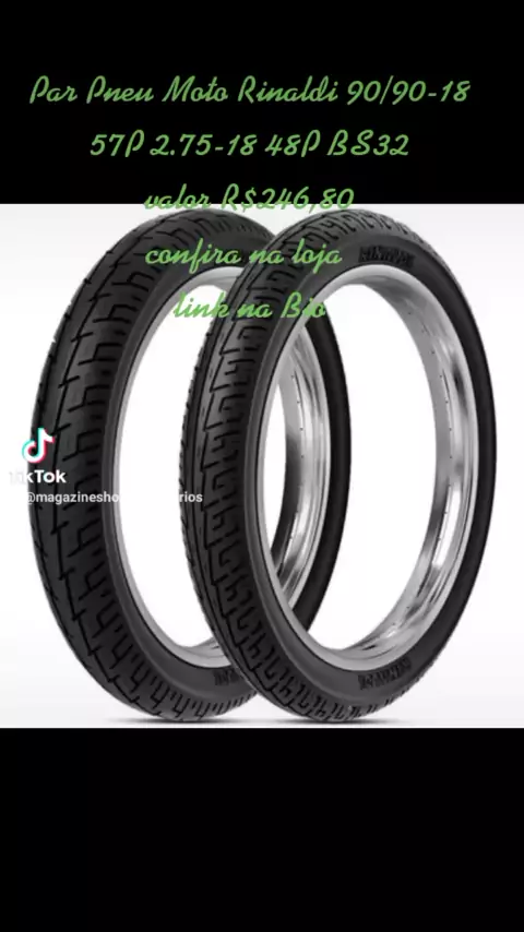 Par Pneu Moto Rinaldi 90/90-18 57P 2.75-18 48P BS32 ! incrível valor R$246,80 link da loja na Bio whatsapp 33998576159