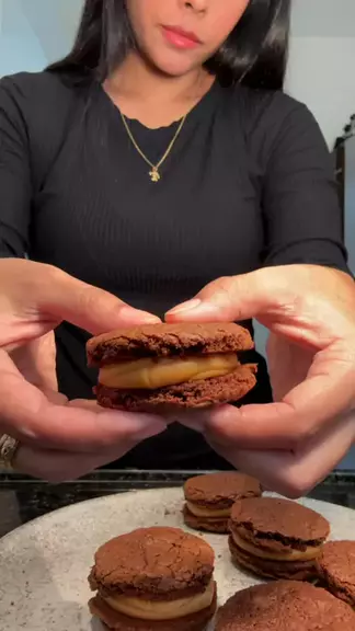 Alfajor + Cookie + Brownie 🍫🍪 240g chocolate (3 barrinhas) 2 colheres de sopa de manteiga 2 ovos 3/4 xíc açúcar mascavo 3/4 xíc farinha de trigo sem fermento 1/2 colher de sopa de fermento Pitada de sal - assar em forno pré aquecido a 200 graus por 10-12 minutos Doce de leite para rechear #receitas #biscoitocaseiro #alfajores #brownie #cookie