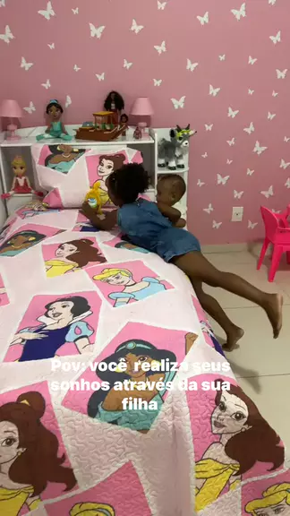 Ela amou a colcha nova 🥰 #maedemenina #maedeprincesa #quarto #maternidade