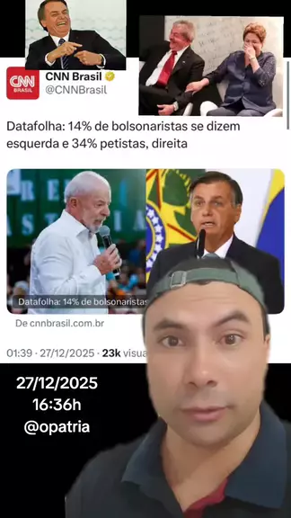 Bolsonaro e Lula no Datafolha. 14% dos bolsonaristas se dizem esquerda e 34% petistas, direita. #Datafolha #lula #BOLSONARO #esquerda #direita