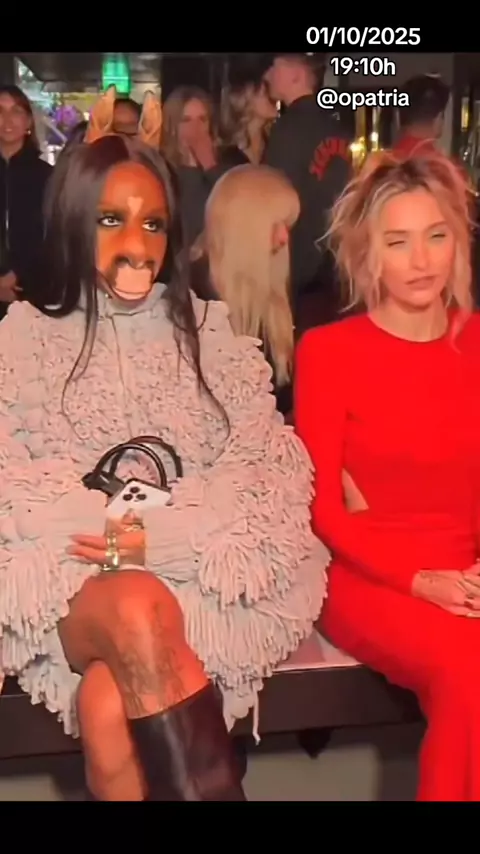 Paris Jackson, senta-se ao lado de uma mulher esquerdista usando uma máscara de cavalo, na primeira fila durante a Paris Fashion Week. #Paris #parisfashionweek #cavalo #MODA #MichaelJackson