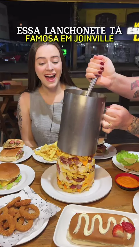 ESSA LANCHONETE TÁ FAMOSA EM JOINVILLE! Fomos conhecer a @wmslanches e amamos experimentar tudo o que eles oferecem! O que pedimos: Wms chicken Wms chicken bacon Torre de batata Dog caipira - com carne moída Onion Batata frita Lanche onion ring bacon Espetinho de camarão com queijão Dog de leite ninho com morango Mil shake de ovo maltine Potinho de cheddar 🕢Horários: Wms aventureiro - de quarta a segunda 18 às 00:30 Wms comasa - De terça a domingo das 18 às 00:30 📍R. Albano
