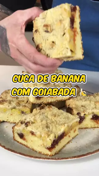 CUCA DE BANANA C/ GOIABADA A receita de hoje é perfeita pra um cafezinho da tarde. 🥛🥧 INGREDIENTES: 100g manteiga sem sal gelada 100g açúcar refinado 2 gemas 250g farinha de trigo 100ml leite ou suco de laranja 2 claras em neves 2g sal 8g fermento químico 4 bananas nanicas picadas 250g goiaba cascão picada FAROFA 100g açúcar refinado 100g manteiga sem sal 100g farinha de trigo Raspas de 1/2 limão RENDIMENTO: 1 Forma retangular 18x27cm #cuca #receitas #PraVocê #cafédatarde