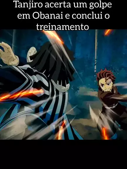 Tanjiro acerta um golpe em Obanai e conclui o treinamento