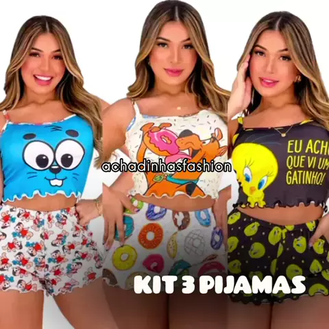 Conforto, fofura e estilo na hora de dormir! Kit com 3 baby dolls em suede com personagens encantadores. Garanta jΓ‘ o seu Kit de Pijamas Baby Doll com personagens lindos! Conforto e estilo para suas noites! *Compre agora na Shopee β ππ: πππ-πππ-πππ* ππ #PijamaFeminino #BabyDoll #SuedeConfortΓ‘vel #PijamasLindos #EstiloNoturno