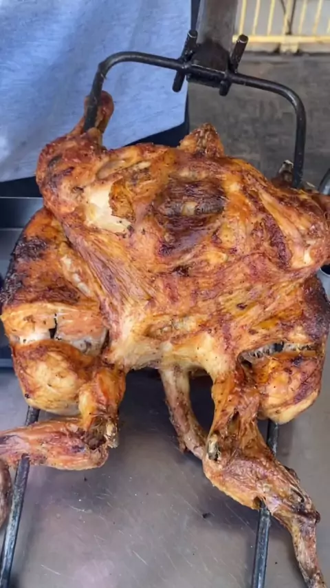Frango assado na brasa da assadeira do Neres