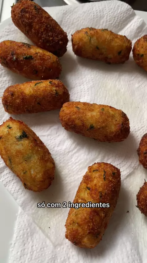 Bolinho de bacalhau só com 2 ingredientes, fácil e fica uma delícia! Também não vai nada de farinha e derivados de leite #receitas #semgluten #semlactose #AquiGeralBrilha #Salgado