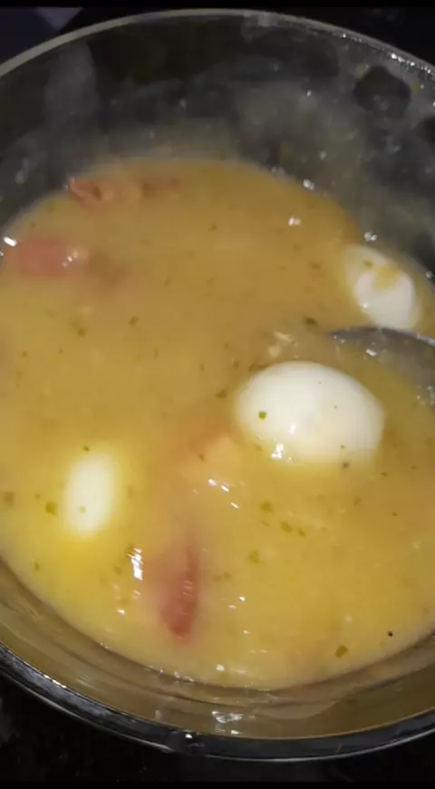 caldo finalizado no caldo vai calabresa charque Bacon queijo coalho ovo de codorna o creme é feito de macaxeira com cebola refogada com alho coloca tudo no liquidificador depois e misturar e tá pronto me siga para mais dicas