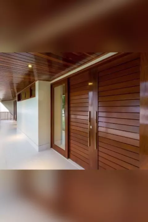 A porta de entrada ou porta principal de uma casa estabelece a comunicação de boas-vindas para quem adentra a residência. As portas de entrada de correr e de duas folhas em madeira são um importante elemento decorativo, definindo o estilo visualizado tanto no exterior quanto no interior da casa. Com múltiplas funções, devem promover segurança, privacidade, além de compor o visual da fachada. #decoração #portaprincipal #portamadeira #portadecorrer #portaduasfolhas
