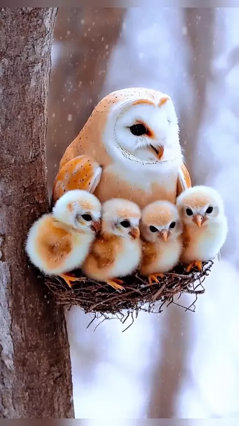 mamãe coruja com seus filhotes no ninho #coruja #filhotes #filhotesfofo #fyp #aves